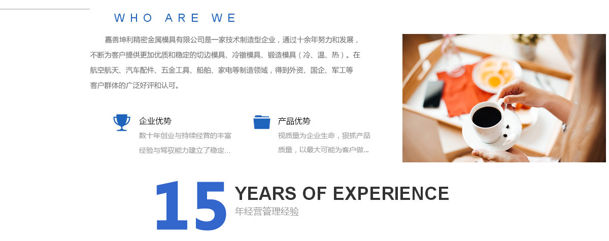公司于2005年涉足切邊模具行業(yè),歷經(jīng)多年、不斷進取、不斷更新產(chǎn)品質(zhì)量,在整頭切邊模方面我們擁有一批精英人才,我們的技術獨特,工藝學習歐美等國。
